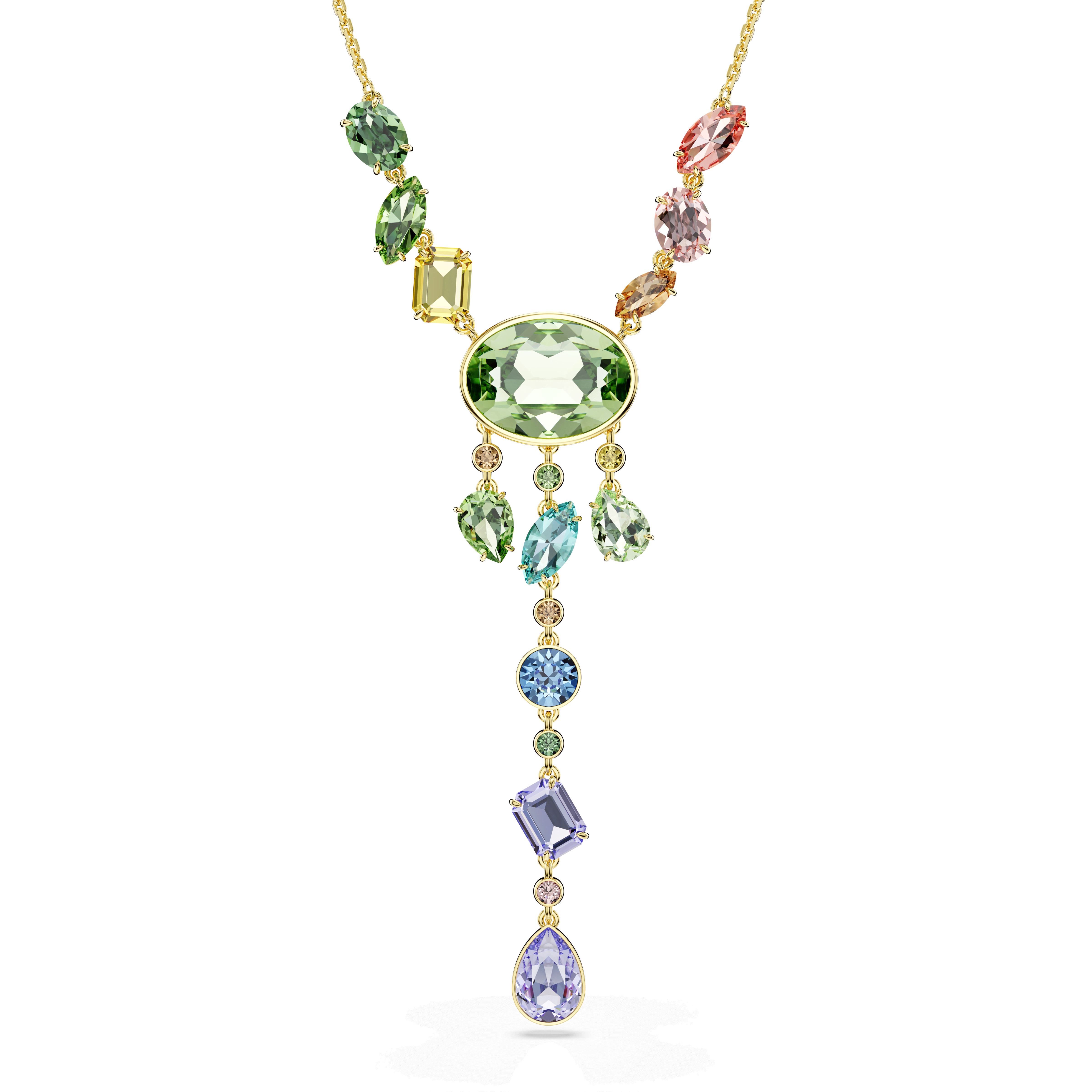 Accented with crystals of every shape and colour, this gold-tone bracelet embodies the joyful and unexpected style of Swarovski’s Gema family.