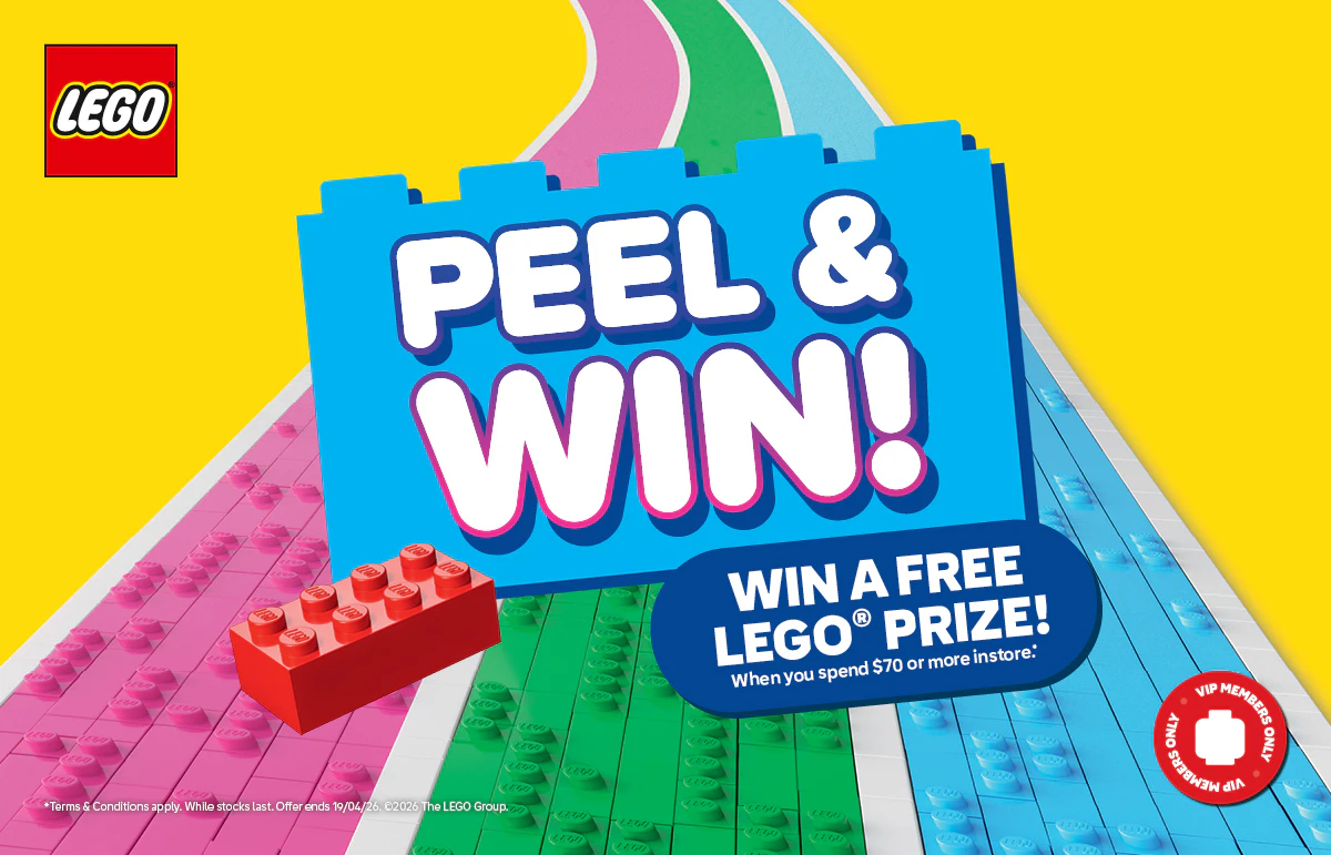 PEEL & WIN a FREE LEGO® Prize when you spend $70 or more in-store.